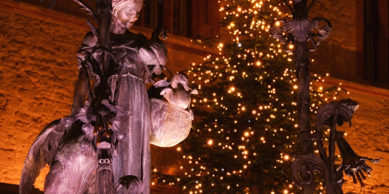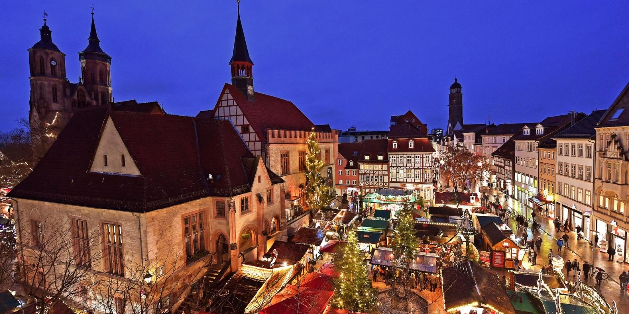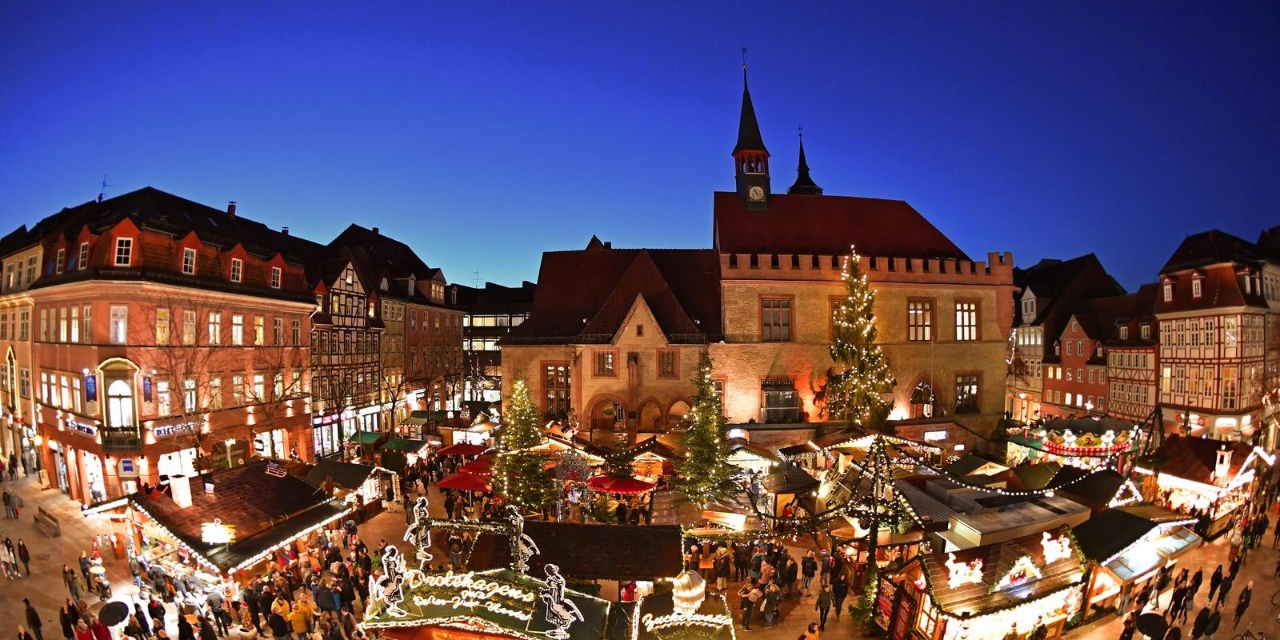 Der Göttinger Weihnachtsmarkt liegt mitten in der Altstadt Göttingens. Er umschließt den Marktplatz, das alte Rathaus und die doppeltürmige Johanniskirche. Der weltberühmte Gänselieselbrunnen liegt mitten auf dem Weihnachtsmarkt.